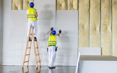Fitting plasterboard to walls and ceilings prior to skimming.